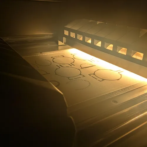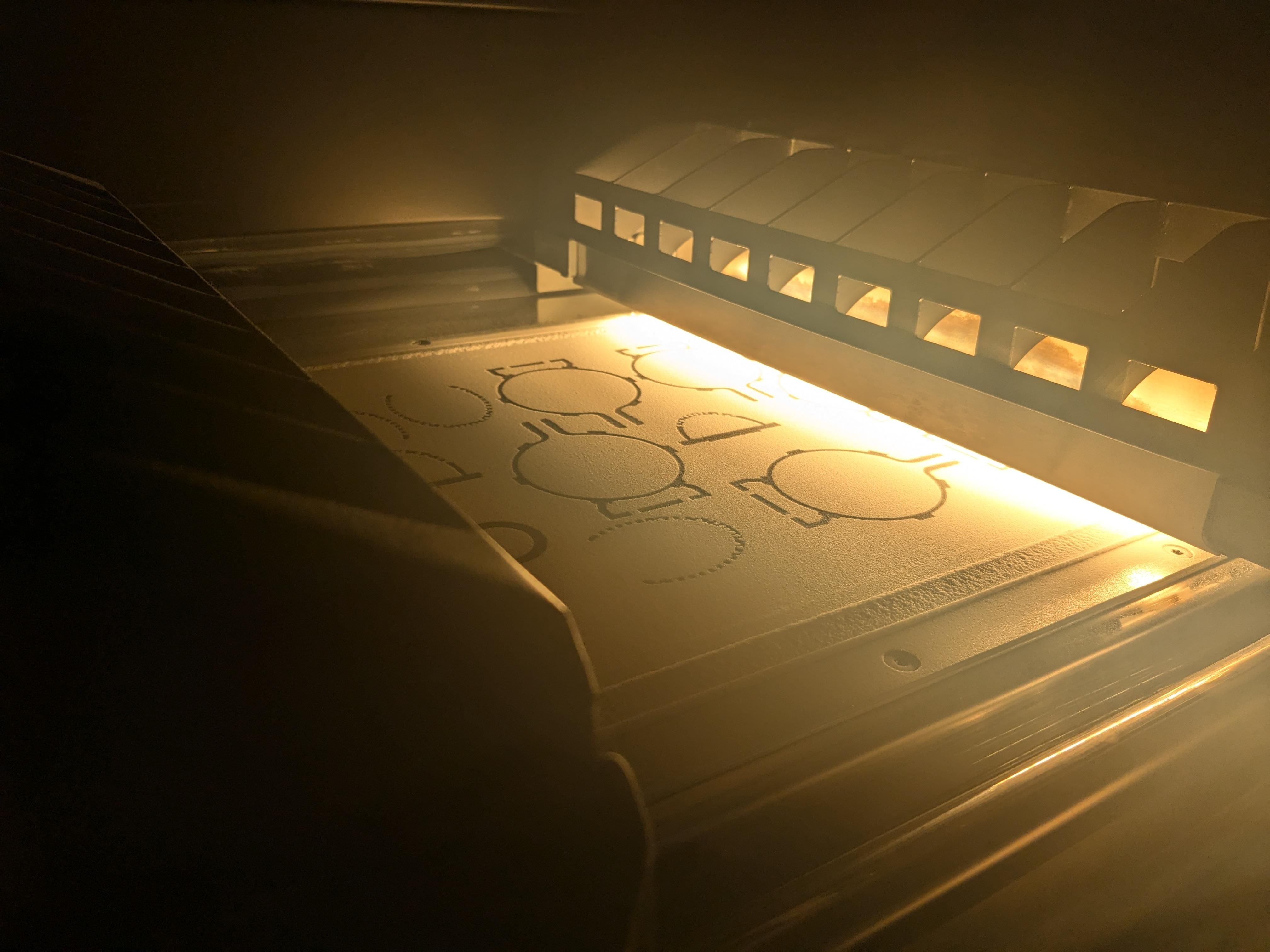 Zunächst wird eine dünne Schicht aus Kunststoffpulver auf die Druckplattform aufgetragen. Ein spezielles Pulvermanagementsystem sorgt dafür, dass das Pulver gleichmäßig verteilt wird, um eine hohe Druckqualität zu gewährleisten.