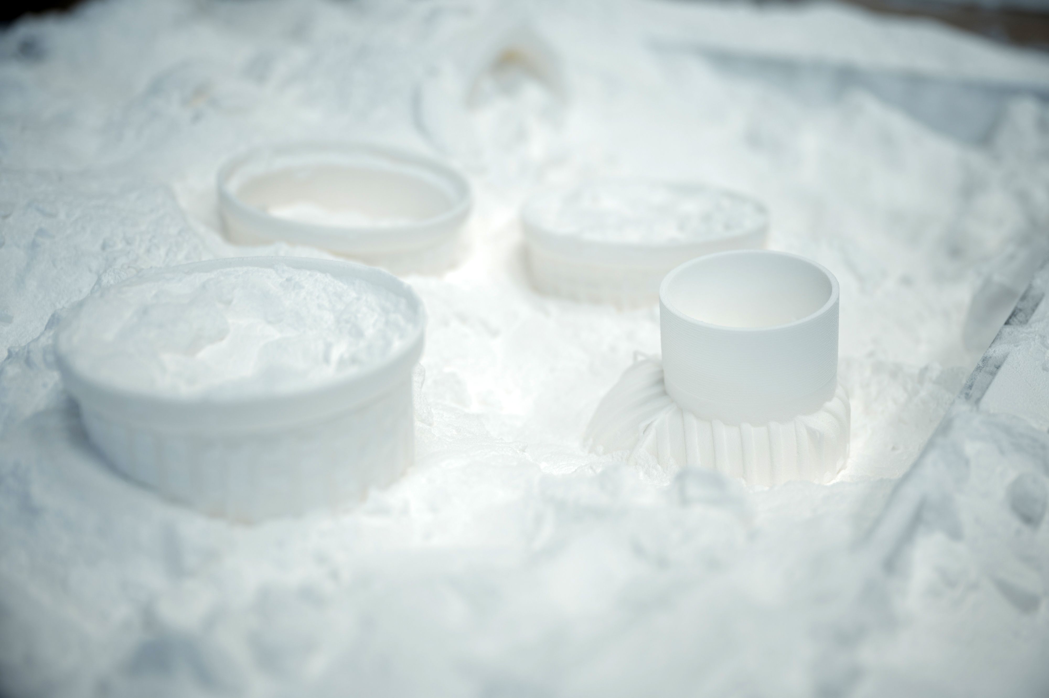 Ein weiterer Vorteil des SLS-Verfahrens ist die Möglichkeit zur Wiederverwendung von ungesintertem Pulver. Da das überschüssige Pulver bei der Fertigung nicht verschmilzt, kann es für nachfolgende Druckvorgänge erneut genutzt werden. Dies reduziert Materialabfälle und macht SLS zu einer ressourcenschonenderen Fertigungsmethode im Vergleich zu Verfahren, die Stützstrukturen oder Werkzeuge benötigen. Gerade für Unternehmen mit hohen Nachhaltigkeitsanforderungen ist dies ein entscheidender Vorteil.