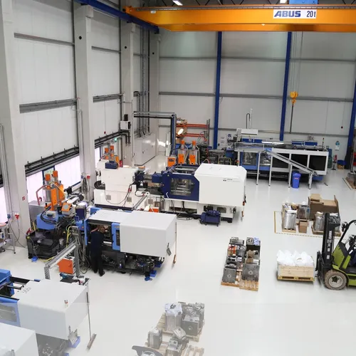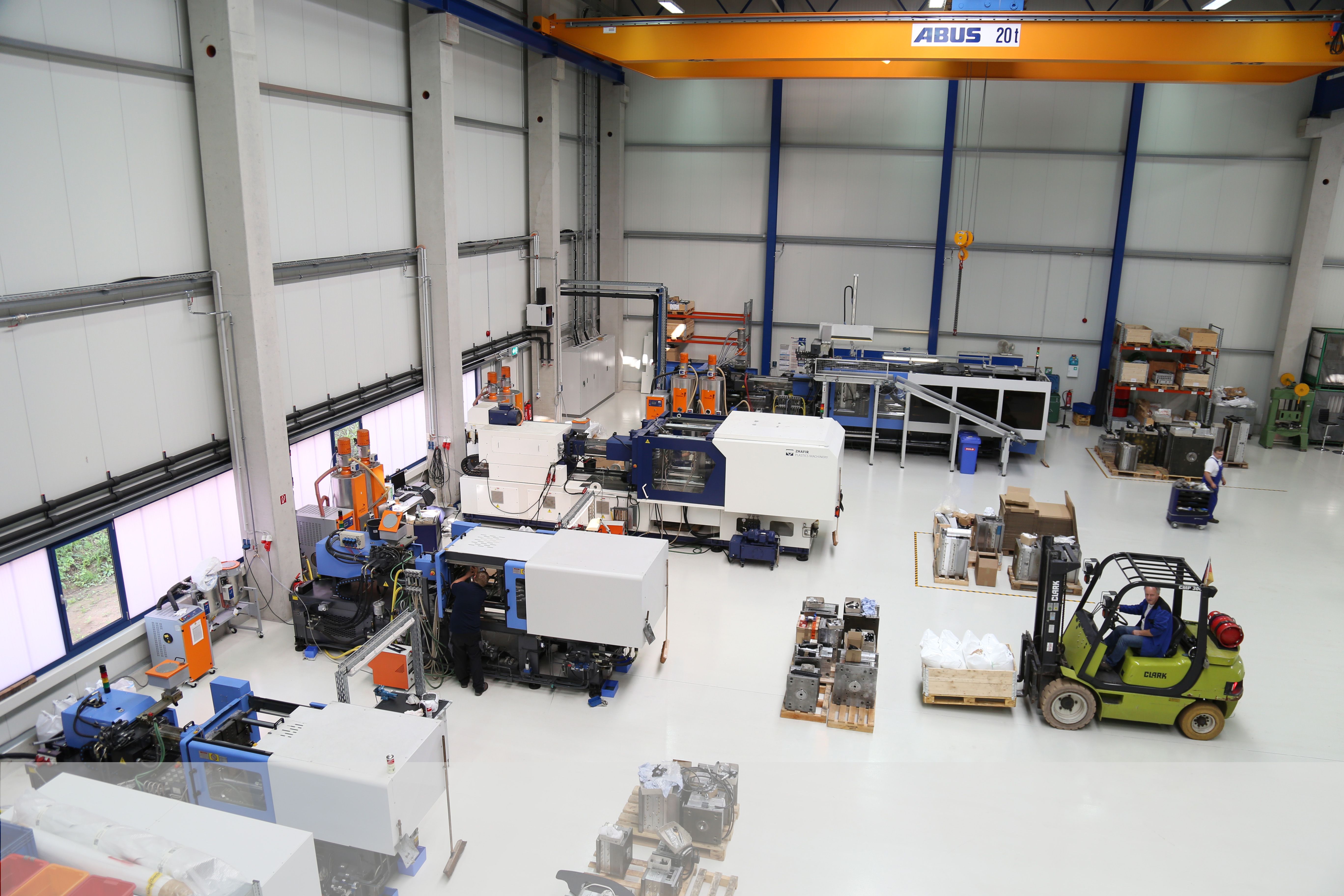 Our state-of-the-art injection moulding technology centre enables us to produce injection moulding parts weighing between 1 g and approx. 4 kg. The range of materials extends from simple polypropylene to engineering plastics such as PPS. We achieve locking forces of 900 KN to 20,000 KN with our varied machinery. This is also where we make your prototype tools that need to be precise, quick and cost-effective, as well as small-series and series-produced tools.