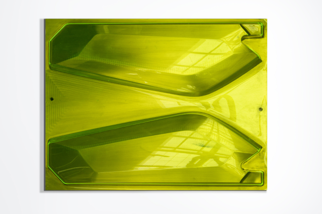 Thermoforming tool for the side panel of a BMW electric scooter.